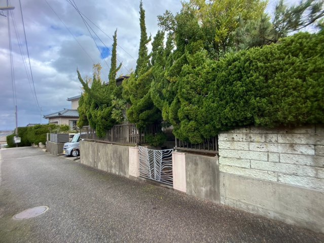 ※解体更地渡し(内容:家屋、植栽や樹木、前面道路側のRC擁壁、門扉、階段)